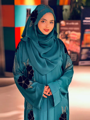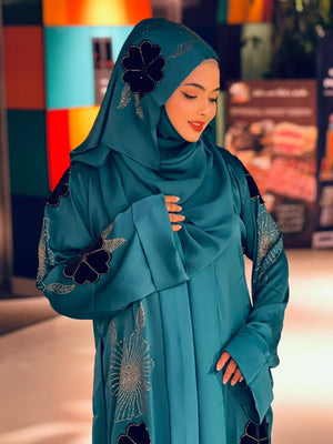 Flower Velvet Abaya ( Sea Green )